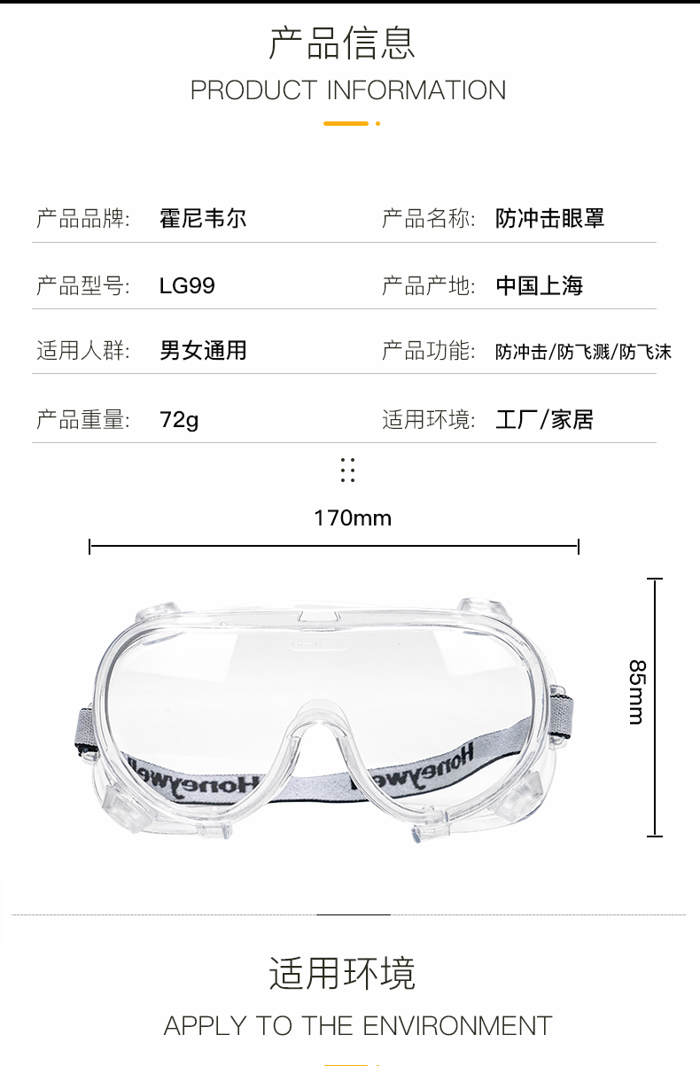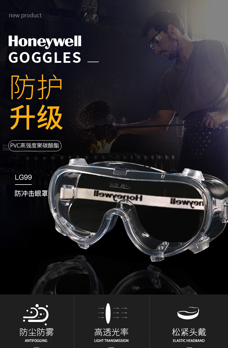 霍尼韋爾LG99100 防護(hù)眼鏡防霧風(fēng)沙騎行眼罩