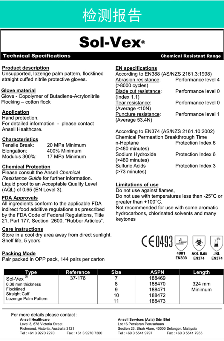 丁腈防化手套